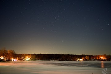 Time lapse photography at night (or hunting for shooting stars): If I set my camera in manual mode, shutter speed to bulb, I can adjust the duration of the exposure, the time between exposures and the number of exposures from 2-99 or infinite….. til the battery dies). The image below was one of about 225, 23 second exposures and I estimate with a full battery one could get about 300 exposures. If you click on the picture below you can see a high resolution image. The stars are not as sharp as I would like, but I made an exposure duration error relative to the focal length.